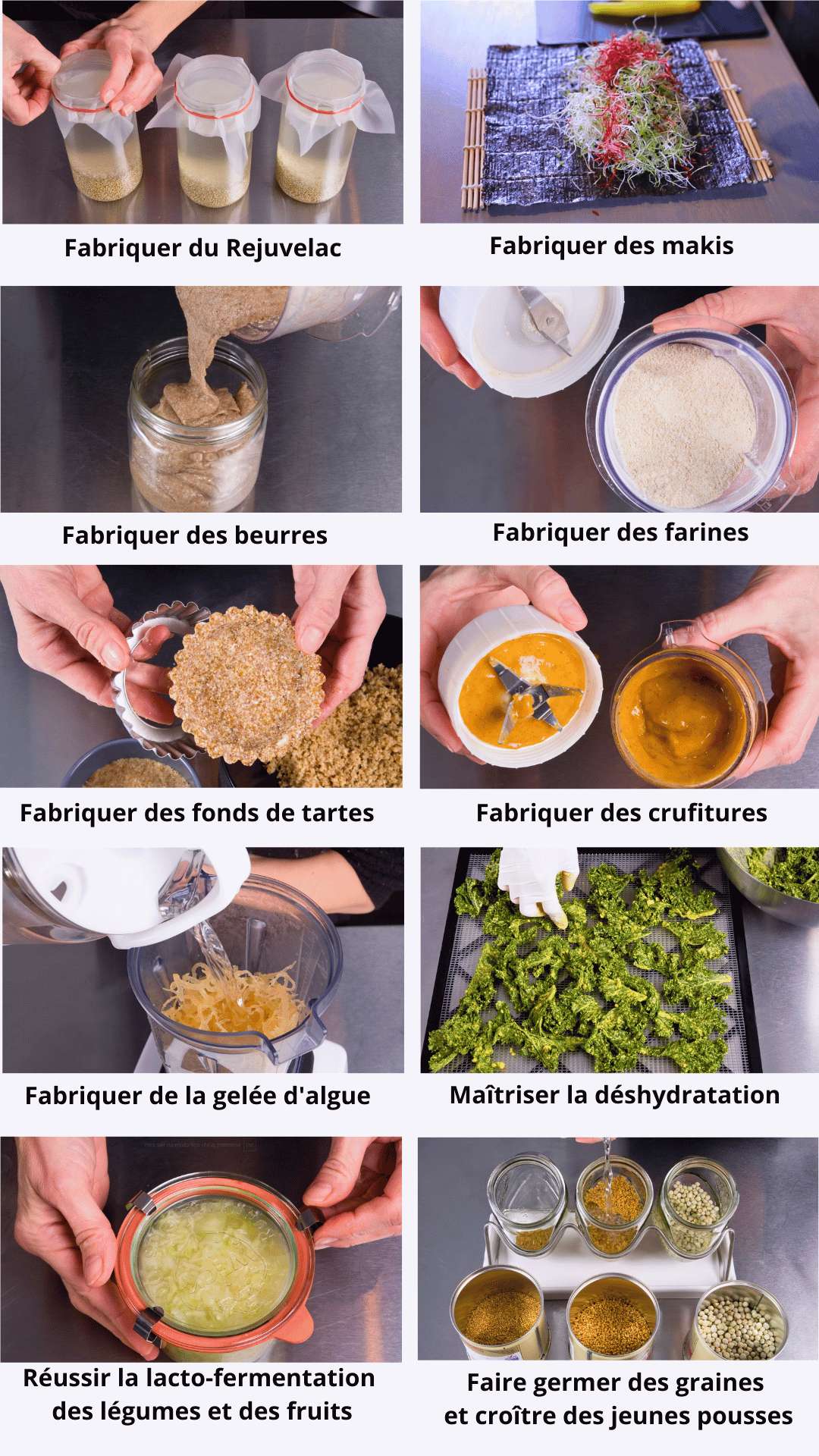 1 - Maîtriser les bases et les techniques avancées de la cuisine végétale et crue, incluant la déshydratation, la lactofermentation et la pâtisserie crue.